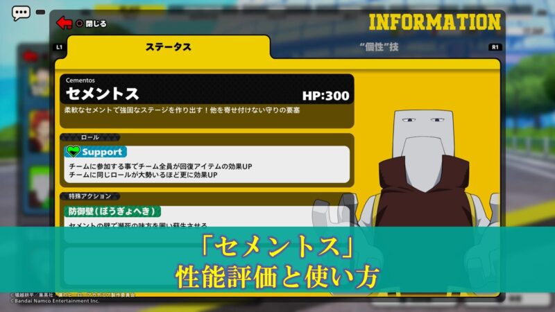 【ヒロアカUR】初心者のための「セメントス」性能評価と使い方(入手方法、立ち回り)更新日:2023年10月29日バトロワ こんちには!ぽいずみです。 本記事では僕のヒーローアカデミアウルトラランブルのキャラクター「セメントス」の使い方について考察します。 基本情報 入手方法 最初から使用可能。 キャラクター性能 項目 HP 300 ロール […] 続きを読む