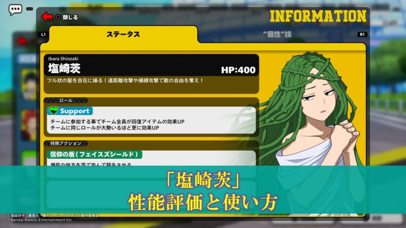 【ヒロアカUR】初心者のための「塩崎茨」性能評価と使い方(入手方法、立ち回り)更新日:2023年10月15日バトロワ こんちには!ぽいずみです。 本記事では僕のヒーローアカデミアウルトラランブルのキャラクター「塩崎茨」の使い方について考察します。 基本情報 入手方法 限定ガチャorポイント交換。 キャラクター性能 項目 HP 400 ロ […] 続きを読む