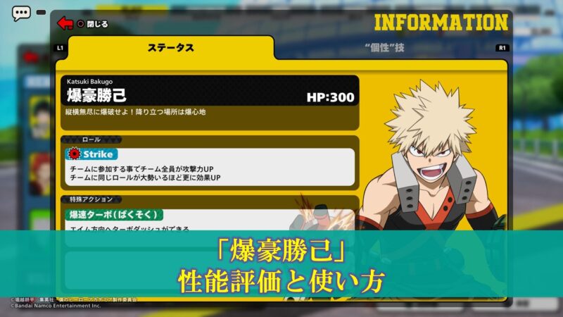 【ヒロアカUR】初心者のための「爆豪勝己」性能評価と使い方(入手方法、立ち回り)更新日:2023年10月15日バトロワ こんちには!ぽいずみです。 本記事では僕のヒーローアカデミアウルトラランブルのキャラクター「爆豪勝己」の使い方について考察します。 基本情報 入手方法 スペシャルライセンスレベル2達成で使用可能。 キャラクター性能 項目 […] 続きを読む